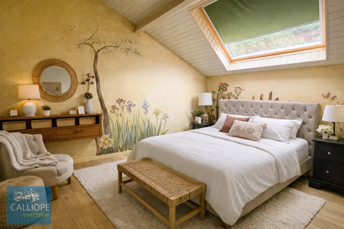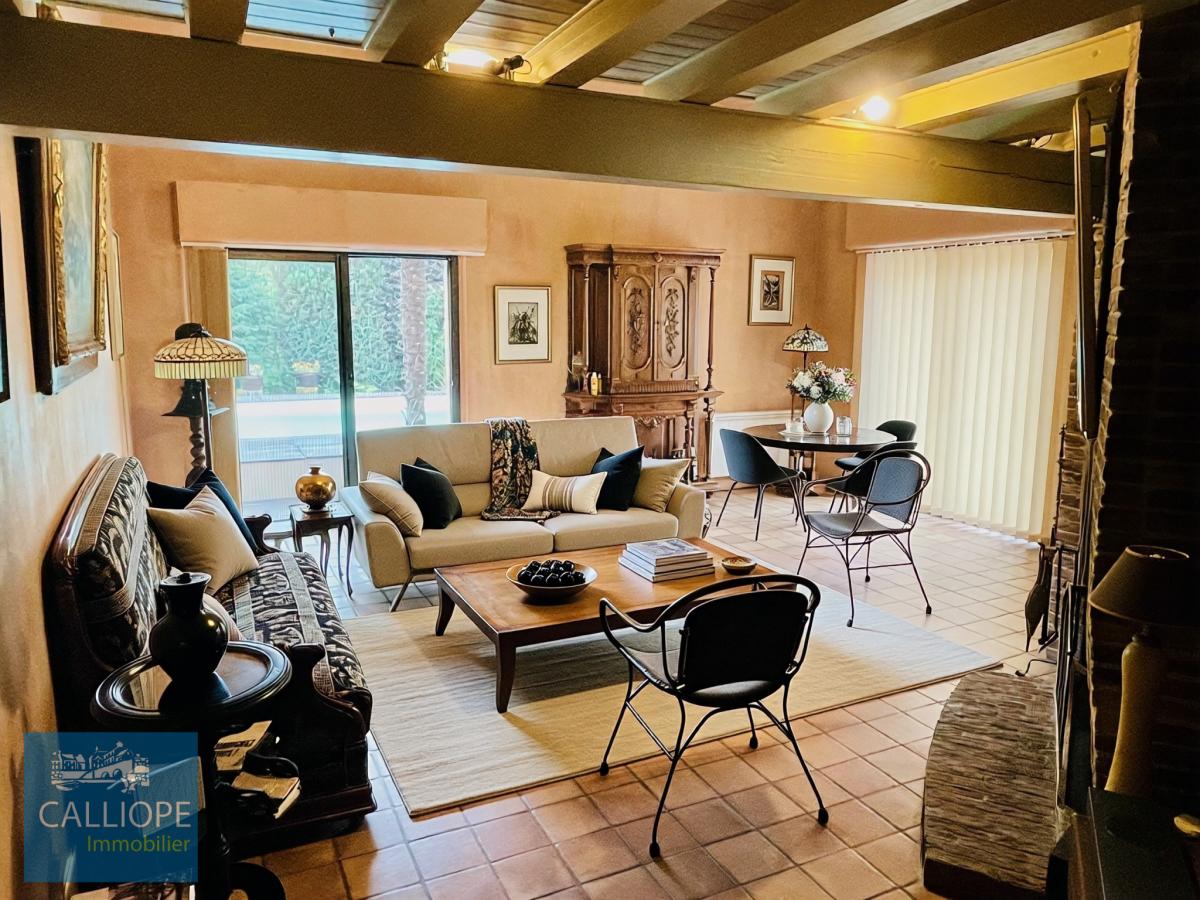 Dès l'entrée, vous serez séduits par un vaste espace de vie d'environ 80 m2 comprenant salle à manger, salon avec cheminée et plafond cathédrale, une cuisine équipée indépendante et une agréable salle à manger d'été dans la véranda.