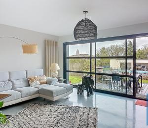 Dès l'entrée, vous serez séduits par un vaste espace de vie d'environ 80 m2 comprenant salle à manger, salon avec cheminée et plafond cathédrale, une cuisine équipée indépendante et une agréable salle à manger d'été dans la véranda.