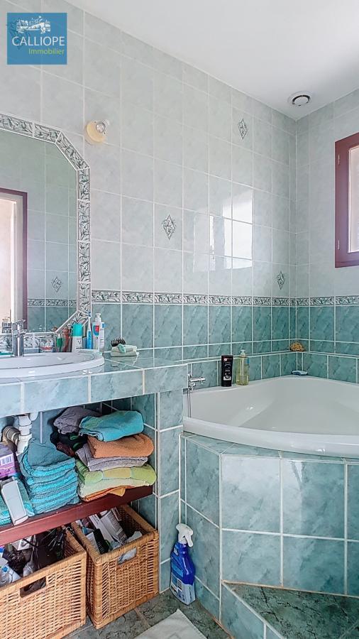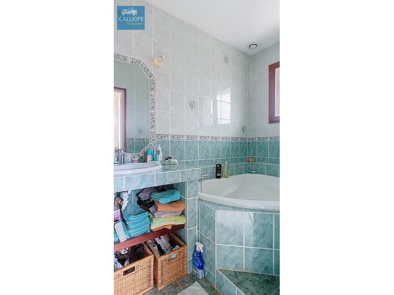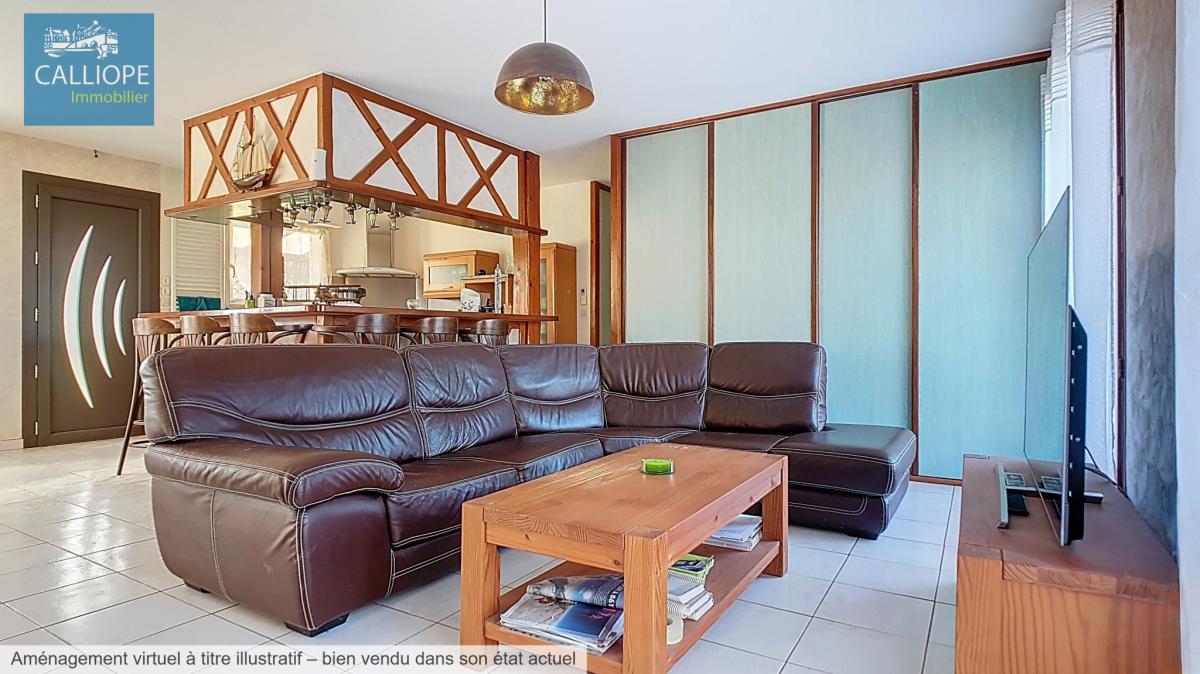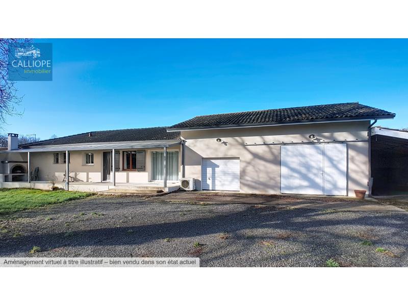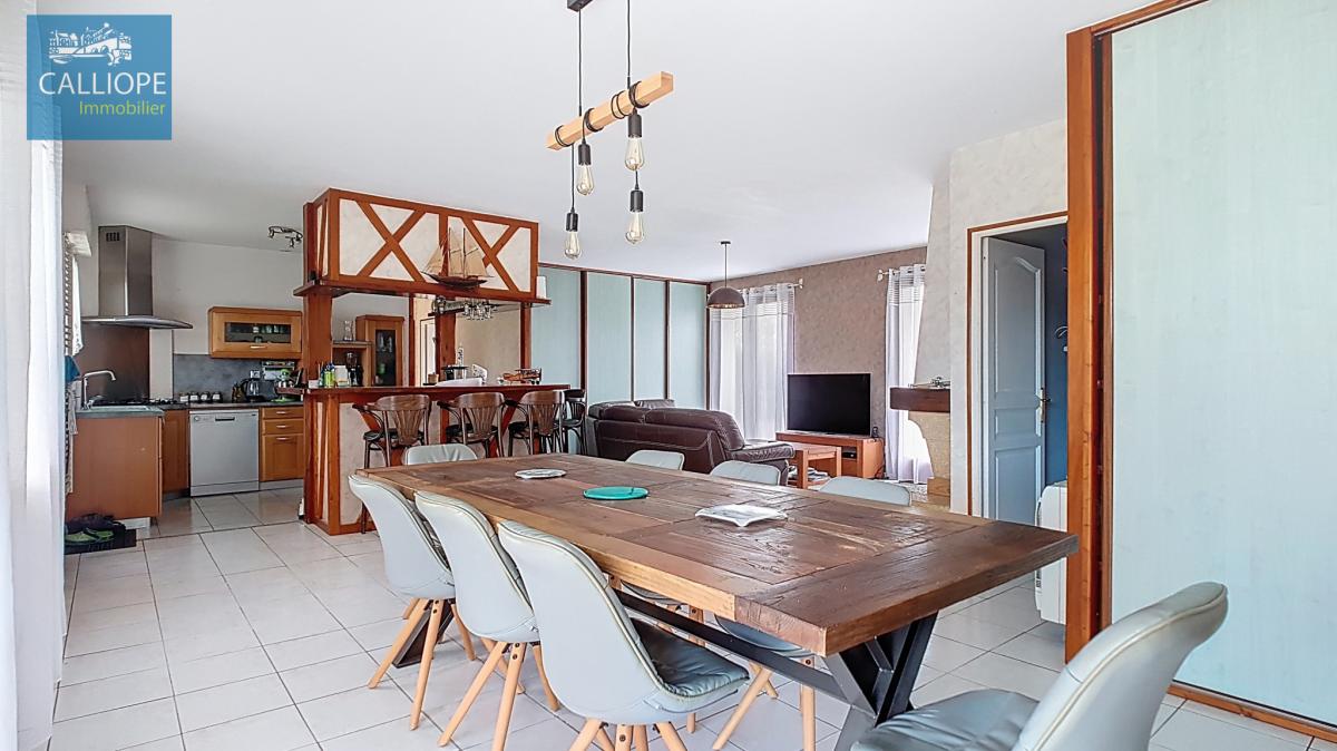 Très jolie maison entretenue avec soins de 117 m2 habitables composée d'un vaste séjour avec cuisine US équipée de 60 m2 et une cheminée, un grand cellier, 3 chambres et une salle de bains. Chauffage électrique et clim réversible. Double vitrage et volets alu. Les plus :