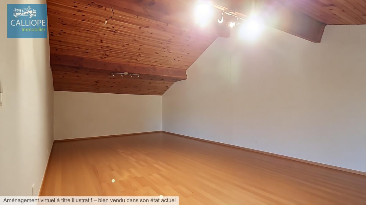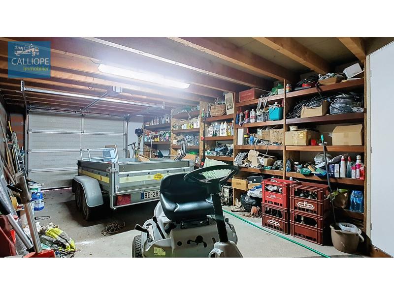- une dépendance attenante composée de 2 garages de 28 et 42 m2 et d'une pièce mansardée, aménagée et isolée au dessus du garage, de 28 m2 au sol pouvant servir de 4me chambre ou bureau; un grand auvent de 30 m2.
